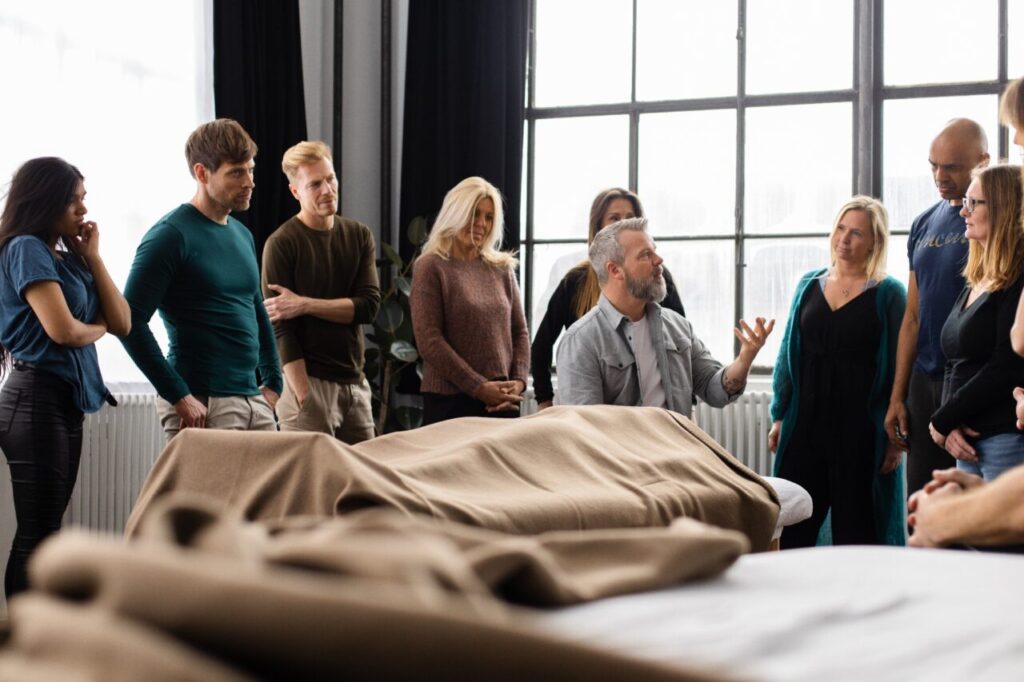 På denne uddannelse bliver du stress, angst og traumeterapeut. Her specialiserer du dig i sammenhængen mellem krop og psyke og får en dyb indsigt i de kropslige og psykiske mekanismer bag udviklingstraumer, chok, angst og stress. På uddannelsen arbejder du selvfølgelig kropsligt, men vi lægger også stor vægt på teorien og den terapeutiske samtale, for at skabe en dybere forståelse af, hvor kompleks et traume kan være i både vores hjerne, sansesystem, følelser, tanker, samt i vores nervesystem. På uddannelsen til stress, angst og traumeterapeut lærer du, hvordan du på et dybere plan kan arbejde med dine klienters udviklingstraumer og/eller chok traume. Det er ofte de bagvedliggende årsager til både stress, angst, samt de mønstre og forsvarsmekanismer, der er styrende i deres liv på grund af traumer. På uddannelse vil vi arbejde med terapeutiske værktøjer til at hjælpe klienterne med at sætte sig selv fri af oplevelser fra deres barndom og chok. På uddannelsen vil du hele tiden selv være i spil og bringe dit eget med ind, så det bliver også en stor personlig rejse for dig selv. Vi kan ikke tage vores klienter længere, end vi selv har gået, og derfor er den personlige proces rigtig vigtig på uddannelsen. Uddannelsen er bygget op således, at du får en masse viden og teori, som vi så omsætter til praksis i samtaleterapien og ved briksen til kroppen for at integrere den. Der vil derfor være en høj grad af vekslen mellem teori og praksis. De store emner på uddannelsen er stress, angst, udviklingstraumer, chok/traume, tidlig tilknytning, skam og vores nervesystem. Vi arbejder altså med hele det fundament, der som små børn former os til de mennesker, vi bliver som voksne. Hele uddannelsen er bygget op med det formål at forstå, hvad der sker i mennesker i tilknytningsprocesser, og hvordan de udviklingstraumer og familiemønstre, vi er i, kan være med til at forme os som mennesker. Samtidig lærer du også, hvad vi som terapeuter så kan gøre for at hjælpe vores klienter med at slippe fri af fortiden,så at du går fra uddannelsen med viden om og redskaberne til, at hjælpe dine klienter der kæmper med stress, angst og traumer i deres liv. Herunder vil flere af de større emner på uddannelsen være beskrevet mere, så du kan få et bedre indblik. I undervisningen vil mange af emnerne smelte sammen, da der er mange overlap i teori og forståelse. Rent praktisk er det i alt 22 undervisningsdage, som er fordelt over 11 samlinger af 2 dage. Undervisningen forgår torsdag og fredag ca. en gang om måneden. Alle dage er undervisningen mellem kl. 9.00-16.00. Der vil blive udleveret materiale og anbefalinger af faglitteratur. Der vil også være øvegrupper ud over undervisningen, for at styrke det faglige niveau. -Teori og forståelse for hvor og hvordan vi kan hjælpe klienten Hjerne- og nervesystemets reaktion på stress og traumer. Tidlig tilknytning – hvordan tryg og utryg tilknytning påvirker vores identitet og relationer. Udviklingstraume/karakterstruktur – hvordan utryg/negativ tilknytning påvirker i forskellige stadier af opvæksten. Arbejde med ”Hukommelsen” som er lagret i vores autonome og somatiske nervesystem Akutte traumer og udviklingstraumer Chok/traume, PTSD & KPTSD Hvad er stress, angst og depression og hvordan kan vi arbejde med det Skam/skyld – hvordan skam i opvæksten og livet sætter dybe spor Smertevidenskab og hvordan traumer kan påvirke smerte og healing WHO – Fasebehandling af Traumer Praktisk terapeutisk arbejde Kropsterapeutiske teknikker og tilgange i arbejdet med stress, angst og traume Indre barn – en psykoterapeutisk model. Den terapeutiske samtale – få teori og erfaring med den svære samtale Åndedræts teknikker til stress, angst og traume Tapping til chok og traume behandling Tolerancevinduet og dets betydning for at arbejde med klientens nervesystem Integration af viden ved briks og i samtalen Teoretiske modeller der arbejdes ud fra Oplevelsesorienteret tilgang i det terapeutiske arbejde Kroppens hierarkier: En model, der gør dig meget mere sikker i, at sætte ind og hjælpe klienten med dét, der er brug for Polyvagal teorien – Forståelsen af vores autonome nervesystem Tolerancevinduet og dets betydning for at arbejde med klientens nervesystem Nuet – En del af klientens vej ud af angst og traumer Ressourcer og regulering af klienten i stress, angst og traume Teori om den følelsesmæssige baggrund for klientens stress, angst og/eller traume
